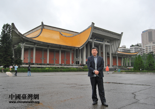 上海的游客馮聯(lián)清在臺北孫中山先生紀(jì)念館前留影(圖片來源:上海市臺辦)