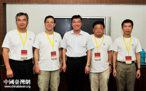 西北農林科技大學校長孫其信與臺灣學生帶隊老師合影(圖片來源:陜西省臺辦)