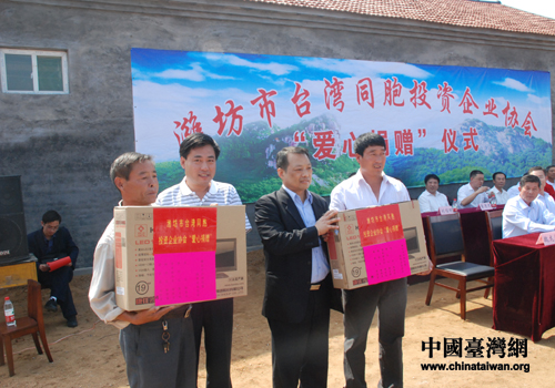 駐濰臺商“愛心捐贈”活動走進山東濰坊臨朐縣(圖)