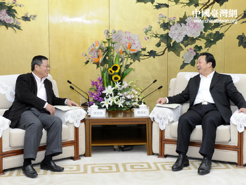 中共四川省委常委、成都市委書記黃新初會見臺灣緯創(chuàng)集團董事長林憲銘。(圖片來源:四川省臺辦)