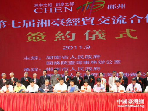 第七屆湘臺經貿交流合作會簽約儀式。圖片來源:湖南省臺辦