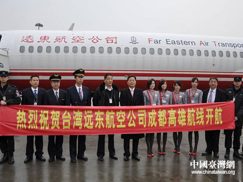 臺(tái)灣遠(yuǎn)東航空公司成都高雄航線開航。圖片來源;四川省臺(tái)辦