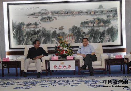 中國臺灣網5月16日濟南消息 日前,山東濟南市委常委、宣傳部長譚延偉會見了到訪的臺灣“中華文化產業協會”理事長周守訓先生一行。