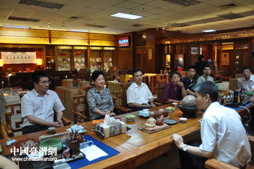 馬玉萍一行首先考察了什剎海地區(qū)文化產(chǎn)業(yè)發(fā)展情況,并參觀了恭王府。隨后,馬玉萍一行來到馬連道,與在此經(jīng)營的臺商朋友親切座談,了解企業(yè)經(jīng)營發(fā)展情況,并到馬連道茶城考察。(中國臺灣網(wǎng)、北京市西城區(qū)臺辦聯(lián)合報道)