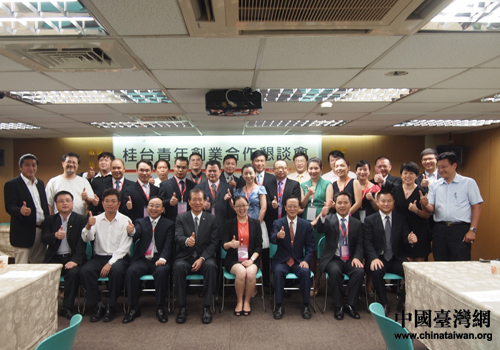 中國臺灣網7月24日臺北消息 7月23日下午,2012年桂臺經貿文化論壇系列活動之“2012桂臺青年創業合作懇談會”在臺北隆重舉行。該活動由廣西青年聯合會、臺灣青年創業總會兩岸青年組織聯合舉辦,圍繞“青春攜手 共創未來”主題,廣西青聯代表團全體成員及臺灣青創總會、臺北青創會青年代表共50多人出席了懇談會。