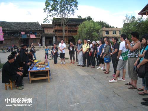 中國臺(tái)灣網(wǎng)8月3日水各消息 日前,臺(tái)灣少數(shù)民族教師參訪團(tuán)在三都水族自治縣水各村參加水族同胞祭祖儀式。