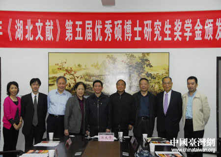 中國臺灣網10月19日武漢消息 臺灣《湖北文獻》第5屆優秀碩博士研究生獎學金頒獎儀式日前湖北大學舉行。來自臺灣的《湖北文獻》雜志社代表向武漢大學、華中師范大學、中國人民大學、湖北大學等高校的13名獲獎學生頒發了獎狀和獎金。