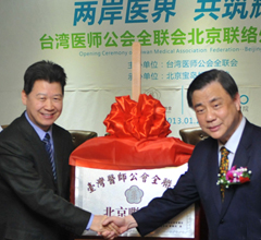 中國臺灣網(wǎng)1月28日北京消息 今天上午,臺灣醫(yī)師公會北京聯(lián)絡(luò)處在北京寶島婦產(chǎn)醫(yī)院揭牌,這是臺灣醫(yī)師公會在大陸成立的首家聯(lián)絡(luò)處,標(biāo)志著兩岸醫(yī)界交流與合作邁入了一個(gè)全新的階段。衛(wèi)生部港澳臺辦副主任王立基、衛(wèi)生部港澳臺辦處長李維、中國醫(yī)師協(xié)會副會長陸君、中華醫(yī)學(xué)會副會長吳明江、北京市海淀區(qū)衛(wèi)生局局長段安安和臺灣醫(yī)師公會理事長李明濱、北京寶島婦產(chǎn)醫(yī)院董事長楊文秀、院長余堅(jiān)忍等兩岸嘉賓出席揭牌儀式。