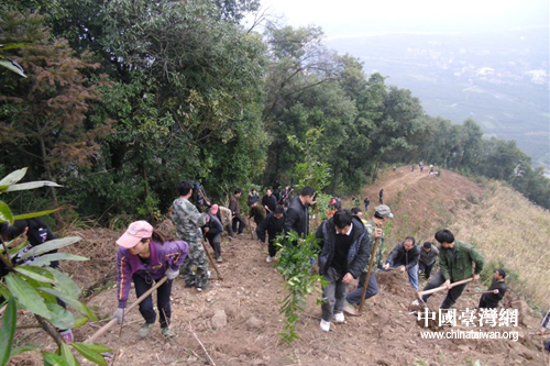 中國臺(tái)灣網(wǎng)3月4日江永消息 草長鶯飛,春回大地。2月27日,湖南江永縣臺(tái)辦在江永縣委常委、縣委統(tǒng)戰(zhàn)部部長、副縣長的帶領(lǐng)下,組織百余人來到黃甲嶺石嶺村,開展了一場別開生面的義務(wù)植樹活動(dòng)。當(dāng)天與當(dāng)?shù)亓洲r(nóng)一起共載種天竺桂、杜英、香樟等綠化大苗132株,修建防火隔離林帶2000米,載種防火苗木6000株,杉苗1.2萬株,種植面積達(dá)150多畝,為建設(shè)“綠色江永”獻(xiàn)上一片“同心林”。(中國臺(tái)灣網(wǎng)江永縣臺(tái)辦通訊員 何麗)
