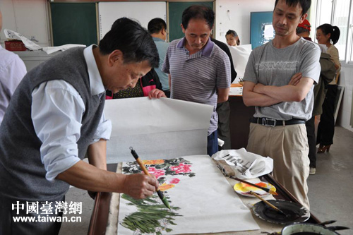 臺屬畫家現(xiàn)場作畫。(圖片來源:廣元市臺辦)