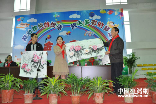 中國臺灣網(wǎng)6月14日廣元消息 四川省廣元市臺辦結(jié)合“實現(xiàn)偉大中國夢、建設美麗繁榮和諧四川”主題教育活動,在六一兒童節(jié)之際,組織臺屬書畫家7人到昭化區(qū)實驗小學,為該校700余名師生送去書畫作品50余幅,著作10本,并與老師同學進行互動交流,談理想、講修養(yǎng)、學技法、習書畫,書畫家們現(xiàn)場為老師同學作書畫100余幅,為實現(xiàn)偉大中國夢鑄造了強大精神動力。