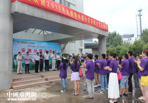 中國臺灣網(wǎng)7月8日合肥消息 7月6日,全國臺聯(lián)2013年臺胞青年千人夏令營安徽分營在合肥開營。安徽省海聯(lián)會副會長周慶出席開營儀式并頒授夏令營營旗。安徽省臺聯(lián)會長陳清海致歡迎辭。省臺辦副主任汪泗淇,省中華文化學(xué)院副院長李霞,省臺聯(lián)副會長仲宏斌、秘書長朱祖春等領(lǐng)導(dǎo)出席了開營儀式。