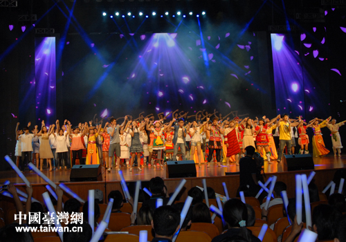 晚會上,滬臺大學生表演了歌舞、朗誦、民樂演奏等精彩紛呈的節目。其中,臺灣少數民族營員的舞蹈《慶豐年》、臺灣中國文化大學營員的小品、實踐大學營員的集體舞都受到全場熱烈歡迎。而滬臺大學生同臺表演的壓軸節目《歌曲串燒》更是掀起了整場晚會的高潮。臺上的主唱同學邊唱邊對臺下揮手,頗有明星風范,而臺下的同學則隨著節拍揮舞熒光棒,熱切地互動回應,會場氣氛熱烈而溫馨。