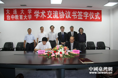 臺(tái)中教育大學(xué)與大連大學(xué)簽署《大連大學(xué)與臺(tái)中教育大學(xué)學(xué)術(shù)交流協(xié)議書》。(圖片來源:大連市臺(tái)辦)