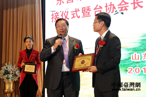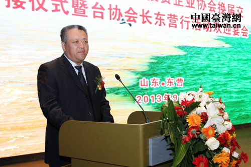 中華兩岸交流協會會長劉宗明出席交接儀式并致辭。(東營市臺辦供圖)