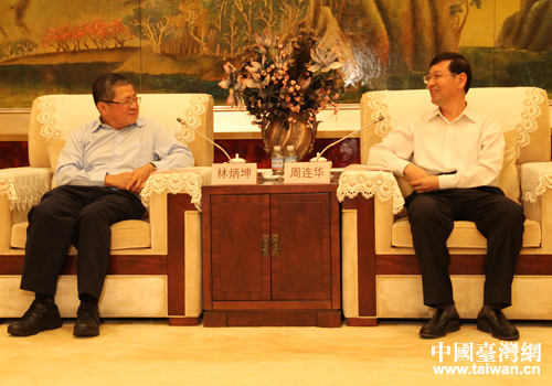 淄博市委副書記周連華會見林炳坤一行。(圖片來源:淄博市臺辦)