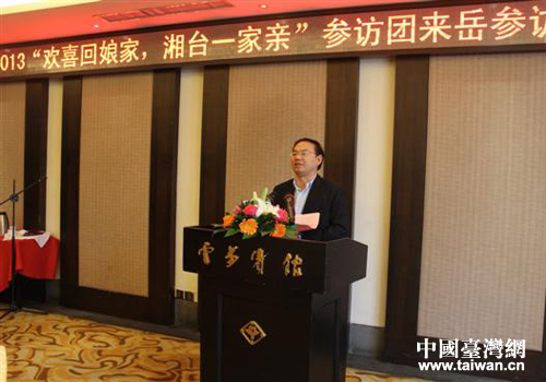岳陽市委常委、組織部部長、統戰部部長伍國用致辭。(圖片來源:岳陽市臺辦)