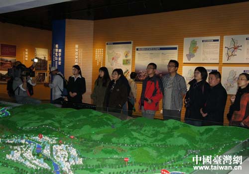 臺灣中時媒體集團(tuán)采訪組一行在雅安采訪拍攝“4.20”地震災(zāi)后重建規(guī)劃展。(圖片來源:四川省臺辦)
