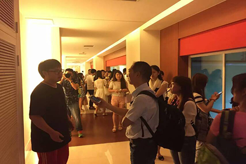 參觀學(xué)生在康師傅成都溫江工廠接受媒體記者采訪。