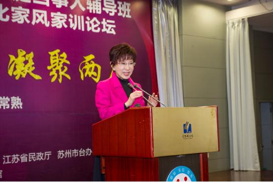 中國(guó)臺(tái)灣網(wǎng)12月23日蘇州訊 為更好服務(wù)兩岸婚姻家庭,搭建溝通互動(dòng)平臺(tái),傳承中華傳統(tǒng)文化家風(fēng)家訓(xùn),由海峽兩岸婚姻家庭協(xié)會(huì)主辦,海峽兩岸婚姻家庭服務(wù)中心等承辦的第四期兩岸婚姻家庭當(dāng)事人輔導(dǎo)班暨中華傳統(tǒng)文化家風(fēng)家訓(xùn)論壇于12月20日在常熟正式開班。中國(guó)國(guó)民黨前副主席洪秀柱出席開班儀式并致辭。