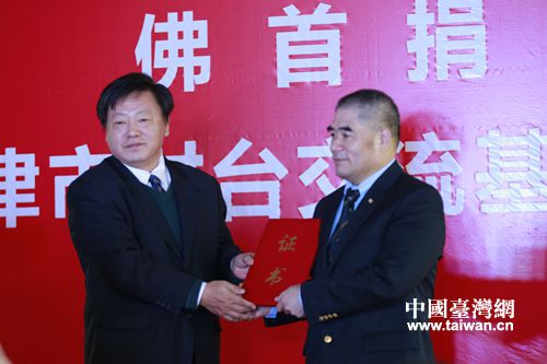 中國臺(tái)灣網(wǎng)12月30日天津訊 12月30日上午,佛首捐贈(zèng)暨天津市對臺(tái)交流基地授牌儀式在天津市武清區(qū)博物館舉行。中國國民黨中央評(píng)議委員會(huì)主席團(tuán)主席張榮恭,中國國民黨中央評(píng)議委員李建榮、葉景成,佛首捐贈(zèng)人、臺(tái)商吳尚鷹等臺(tái)灣嘉賓出席此次活動(dòng)。