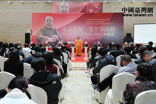 星云大師一筆字書法展2015中國大陸巡回湖北開幕式。(圖片來源:湖北省臺辦)