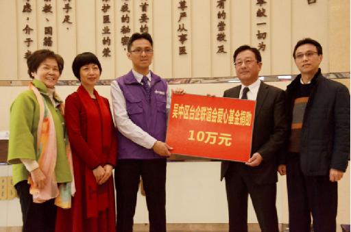 中國臺(tái)灣網(wǎng)3月16日蘇州訊 今天上午,蘇州市吳中區(qū)臺(tái)企聯(lián)誼會(huì)來到臺(tái)資明基醫(yī)院,向醫(yī)院臺(tái)灣病患捐助10萬元人民幣。蘇州市臺(tái)辦副主任沈蓉,吳中區(qū)臺(tái)協(xié)會(huì)會(huì)長謝清福參加了捐助活動(dòng)。