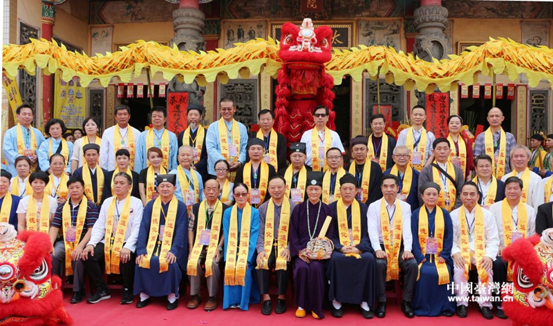高雄道德院住持太乙宗師翁太明、四川省道教協會會長唐誠青與參與法會團體合影。(《臺灣導報》記者李鳴盛拍攝)