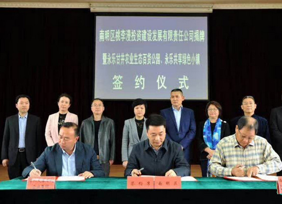 中國臺灣網(wǎng)4月13日貴陽訊 日前,貴陽市南明區(qū)桃李漫投資建設(shè)發(fā)展有限責(zé)任公司揭牌暨“永樂甘井農(nóng)業(yè)生態(tài)百貨公園”項目、“永樂共享綠色小鎮(zhèn)”項目簽約儀式舉行,標志著我區(qū)深入貫徹落實“鄉(xiāng)村振興戰(zhàn)略”,搶抓貴陽市“旅游環(huán)線”建設(shè)歷史機遇,推動永樂鄉(xiāng)富美鄉(xiāng)村、特色小鎮(zhèn)建設(shè)進入了新階段,而該鄉(xiāng)永樂村、干井村、水塘村,也將迎來大發(fā)展、舊貌換新顏。南明區(qū)委書記朱麗霞、區(qū)長朱剛、區(qū)政協(xié)主席羅俊,臺灣臺一集團董事長張國禎、貴州大秦世紀企業(yè)集團董事長秦剛、融創(chuàng)中國西南區(qū)域貴陽公司城市總經(jīng)理李杰出席簽約儀式,儀式由南明區(qū)委副書記田勝松主持。