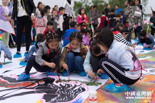 活動現場,開展了包括臺灣人文旅游展覽,現場美術教學、DIY風箏比賽、扎染文化體驗、兒童跳蚤市場等系列活動。特別是現場美術教學將巨幅祖國地圖以藝術形式呈現,將現場氣氛推向高潮。
