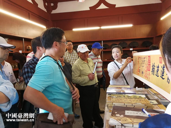 參訪團成員觀摩《上陽臺貼》上李白的行草書法造詣。(圖片來源:綿陽市臺辦)