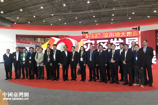 臺灣嘉賓參觀“5·12”汶川特大地震災區發展振興成就展并合影留念。(中國臺灣網 趙苗青 攝)