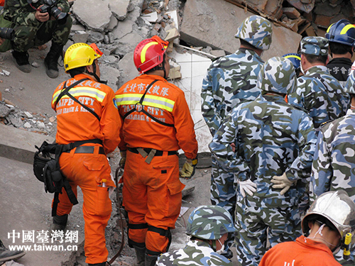 臺灣紅十字救援隊奔赴災區實施救援。(圖片來源:四川省臺辦)