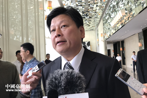 臺灣花蓮縣長傅崐萁接受記者采訪。(中國臺灣網 趙苗青 攝)
