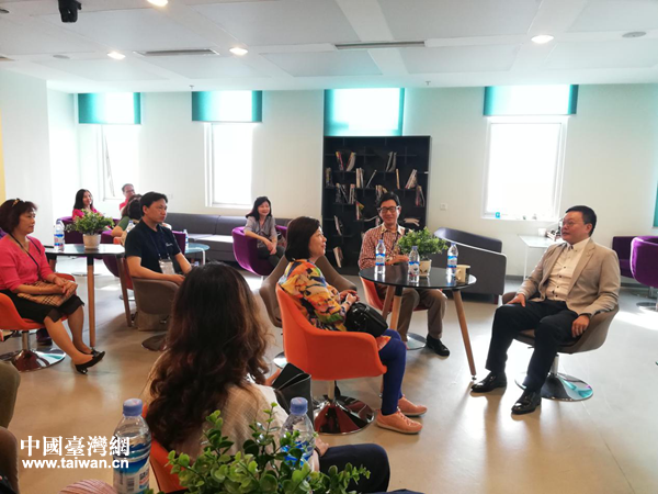 成都臺協常務副會長暨青委會主任張榮華向參訪團介紹德陽青創園相關情況。(圖片來源:四川省臺聯)