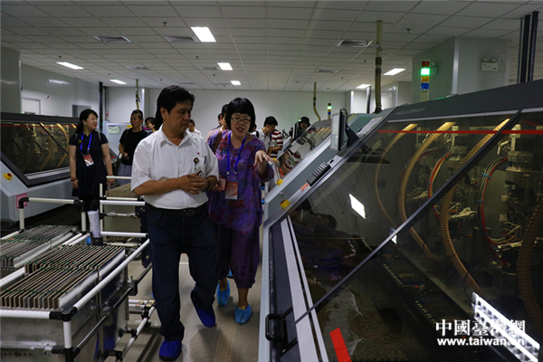 海峽兩岸媒體記者參訪入駐黃石的第一家臺資企業——滬士電子公司。(中國臺灣網 郜利敏 攝)