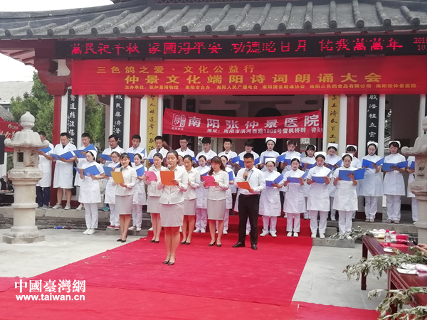 中國臺灣網6月19日南陽訊 6月14日,仲景文化端陽詩詞朗誦大會在河南省南陽市醫(yī)圣祠舉辦,南陽市臺辦、南陽市臺商界、南陽博物館界、播音朗誦界、書畫界等知名人士和詩詞朗誦愛好者共200余人參加了活動。