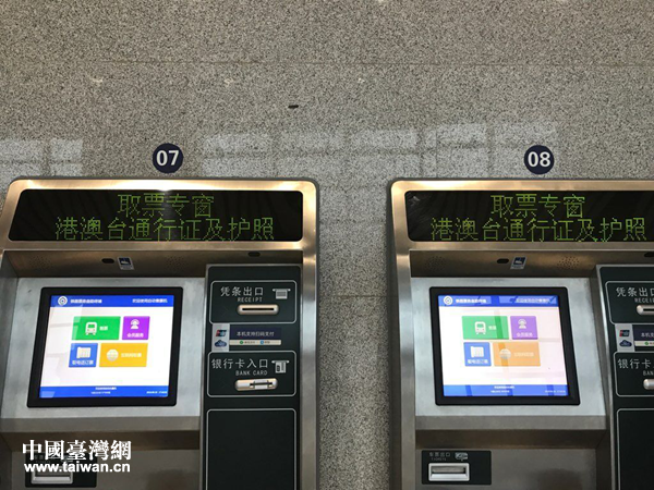 馬鞍山東站設立的臺胞證可自助購取票機器。(圖片來源:馬鞍山市臺辦)
