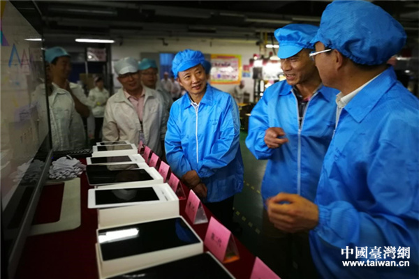 四川省臺辦主任周敏謙深入富士康(成都)公司生產車間查看生產情況。(圖片來源:四川省臺辦)