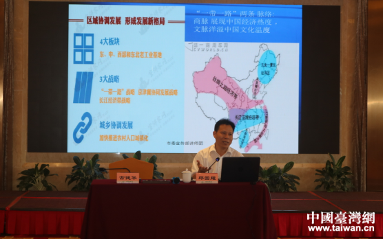 惠州市委講師團(tuán)團(tuán)長(zhǎng)邱國(guó)耀為學(xué)員授課。(圖片來(lái)源:廣東省臺(tái)辦)