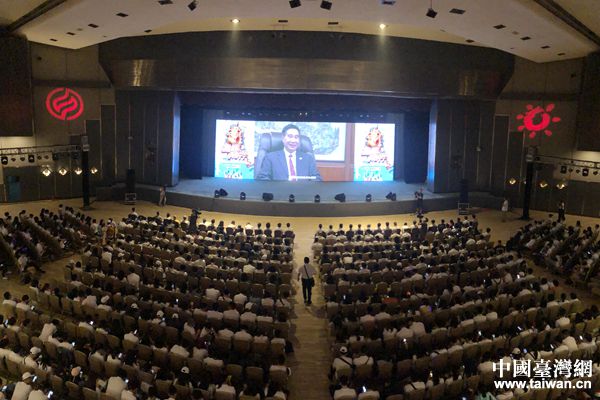 近千名臺胞青年參加夏令營開營儀式并接受全國臺聯(lián)會長黃志賢視頻祝福。(全國臺聯(lián) 易靖茗 攝)
