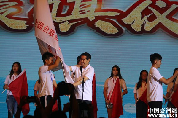 全國臺聯(lián)黨組書記、會長黃志賢授夏令營總營旗。(全國臺聯(lián) 易靖茗 攝)