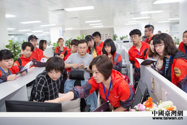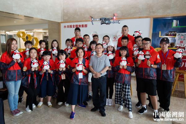 臺灣師生參觀四川日報《航拍四川》辦公室。(圖片來源:四川省臺辦)