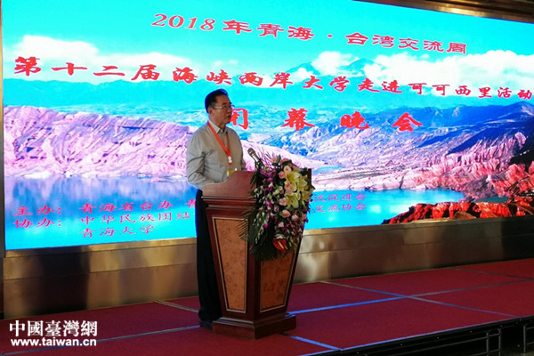協(xié)辦單位中華民族團(tuán)結(jié)協(xié)會(huì)榮譽(yù)理事長夏瀛洲致辭。(圖片來源:青海省臺(tái)辦)