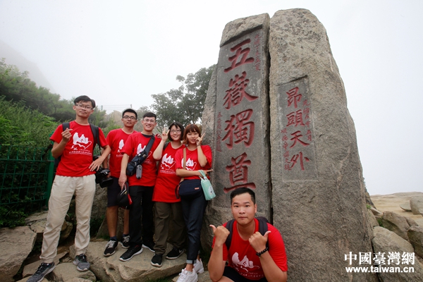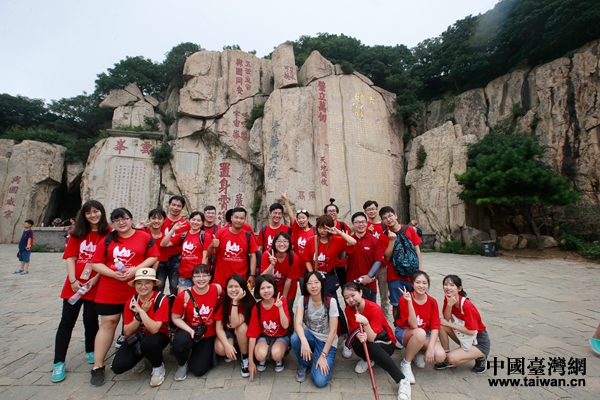 參加暑學營的兩岸青年登上泰山。(圖片來源:山東省臺辦)