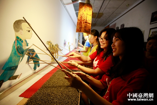 暑學營的兩岸青年觀看并體驗了世界非物質文化遺產——泰山皮影戲。(圖片來源:山東省臺辦)