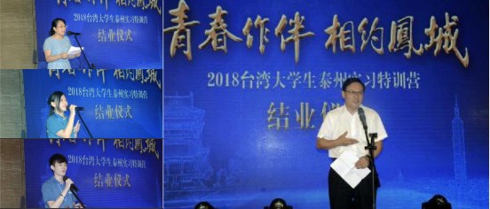 張為在結業儀式上致辭。他首先向參加本次活動的臺灣大學生同學們致以良好的祝愿!他說臺灣大學生來蘇實習就業特訓營是江蘇與臺灣青年交流合作的一個重要平臺。目前已經連續舉辦了兩屆,在海峽兩岸產生了廣泛地影響,較好地促進了蘇臺兩地青年大學生真誠交流,建立了友誼,融合了感情,增進了了解和認同,對推動兩岸關系和平發展,促進兩岸同胞“心靈契合”具有積極意義。江蘇省即將出臺75條措施,涉及臺灣同胞所關心的在大陸學習、就業、創業、生活中的一攬子優惠政策,他真誠歡迎臺灣青年學生們分享大陸發展的機遇,在祖國大陸、在江蘇、在泰州施展才華、實現抱負。