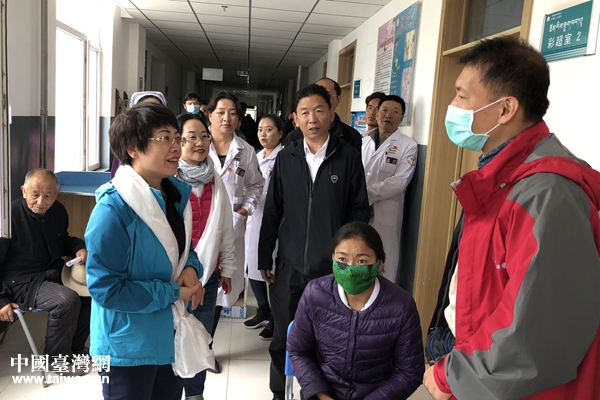 青海生臺辦副主任應秀麗與臺灣路竹會義診醫師團醫生交流。(圖片來源:青海省臺辦)