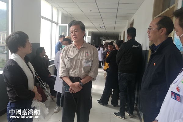 工作組一到玉樹州便趕忙前往囊謙縣,看望并慰問了在藏區開展義務診療活動的36名臺灣醫生和義工。據現場了解,路竹會醫生、義工以及當地藏語翻譯三人一組開展義診,由于診室不夠,就在走廊中設臺看診,過往可見看病的患者排滿走廊,現場十分忙碌。
