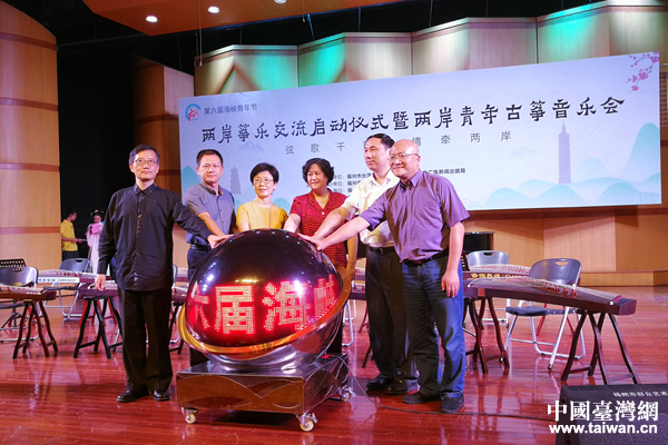 兩岸嘉賓共同觸動兩岸青年箏樂藝術交流活動啟動球。(中國臺灣網 張露露 攝)